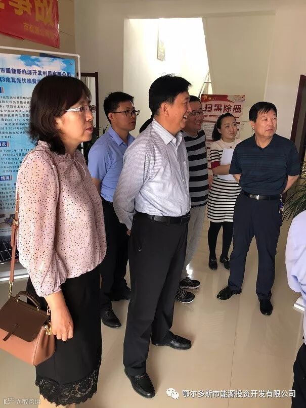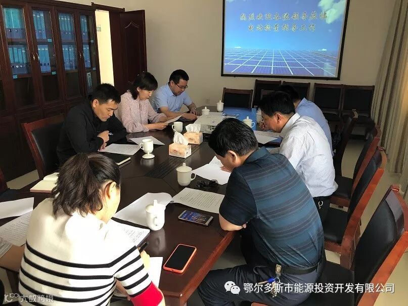 为切实推进光伏扶贫项目综合验收评估工作,5月29日,市能源局副局长高凌云、杭锦旗扶贫办主任王光荣、杭锦旗能源局副局长薛刚一行赴鄂国能赛台扶贫光伏电站召开“光伏扶贫工作推进调度会”。杭锦旗同圆扶贫公司董事长邓育仁、能源公司总经济师白丽君参加会议。