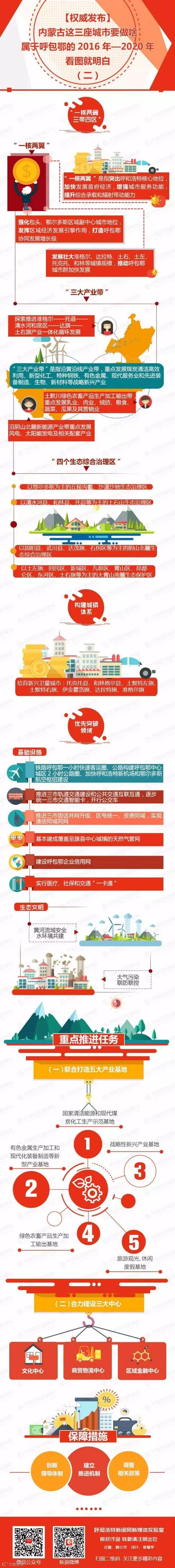 以新产业、新动能为引领,促进产业协同发展、差异化发展。通过打造“中国云谷”,建设战略新兴产业基地。加快推进以呼包鄂为中心,以大储存、多平台、全产业为目标,建成服务全区、辐射全国、面向世界的云计算数据中心、备份中心和研发培训、开发应用、交易展示中心,力争近期大数据服务器突破百万台运营规模。依托龙头企业,建设绿色农畜产品生产加工输出基地。加强奶源基地建设,创新产品供给、巩固提升“中国乳都”核心地位;围绕补齐中国草业短板,依托草业龙头企业的创新引领和带动作用,打造“中国草业之都”;以内蒙古优质肉羊产业资源为依托,种养加全产业链深度开发,打造“中国肉羊产业第一品牌”。大力实施“菜篮子”工程,共同谋划布局呼包鄂三市蔬菜种植基地和公铁航空立体冷链物流,努力提高蔬菜自给率和区域供给率。依托电力优势,消化过剩产能,加快建设“中国光伏材料之都”。发挥呼包鄂现有优势,大力发展硅铝碳新型材料产业,使新能源行走工业、风力发电和输变电设备、轨道交通装备、工程机械再制造、节能环保及综合利用装备等迅速成为主导产业,建设现代装备制造基地。