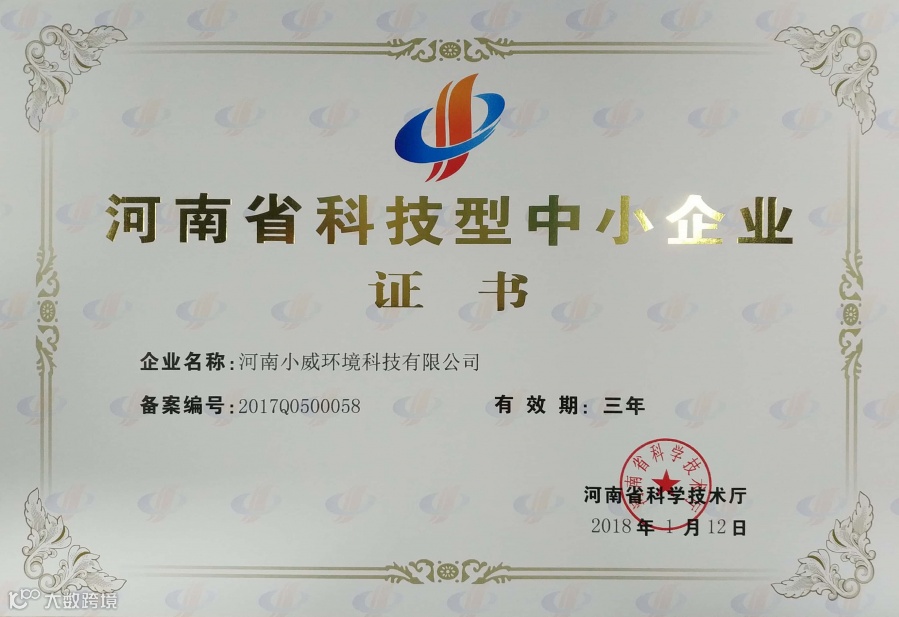 小威环境以技术创新为核心竞争力,先后被评为:国家级高新技术企业、国家级科技型中小企业、河南省新型研发机构、新乡市工程技术研究中心,拥有市政公用工程施工总承包叁级、环保工程专业承包叁级、建筑机电安装专业承包叁级资质,并通过ISO9001质量管理体系认证、ISO14001环境管理体系认证、OHSAS18001职业健康安全管理体系认证,同时还是中国环境保护产业协会理事。
