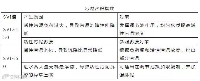 污泥体积指数SVI=SV30/MLSS,SVI在50~150为正常值,对于工业废水可以高至200。活性污泥体积指数超过200,可以判定活性污泥结构松散,沉淀性能转差,有污泥膨胀的迹象。当SVI低于50时,可以判定污泥老化需要缩短污泥龄。