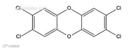 二噁英又称二噁因,属于氯代三环芳烃类化合物,是由200多种异构体、同系物等组成的混合体。其毒性比氯化钾、砒霜强得多。是非常稳定又难以分解的一级致癌物质。二噁英中毒性最强的是2,3,7,8-四氯二苯并二噁英,其化学结构式为: