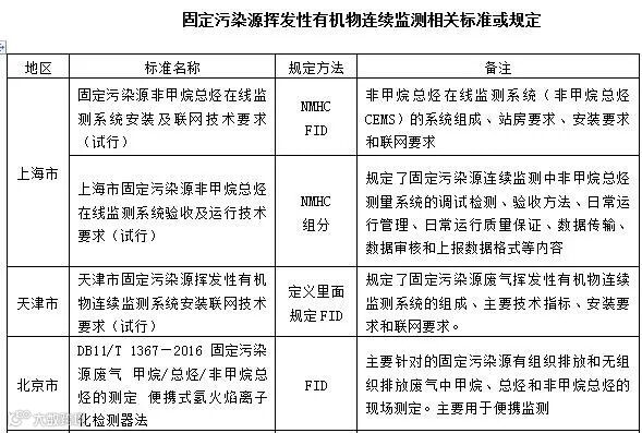 我国在挥发性有机物监测方面也出台了一系列监测标准。各地针对固定污染源挥发行有机物连续监测相继出台了技术规范。