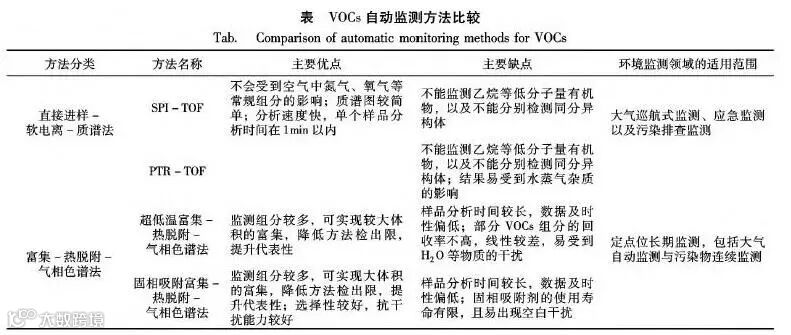 VOCs的监测可以分为手工监测和自动监测两大类。相对于“现场采样一实验室分析”的手工监测,自动监测具有时效性强、数据量大、代表性较好、较节省人力、仪器较复杂等特点。目前我国大气VOCs自动监测方法主要是两大类:直接进样一软电离一质谱法、富集一热脱附一气相色谱法。