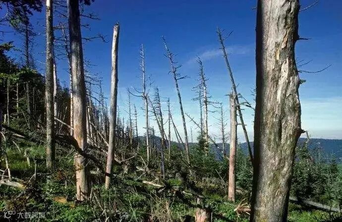 大气污染对农业生产也造成很大危害。酸雨可以直接影响植物的正常生长,又可以通过渗入土壤及进入水体,引起土壤和水体酸化、有毒成分溶出,从而对动植物和水生生物产生毒害。严重的酸雨会使森林衰亡和鱼类绝迹。