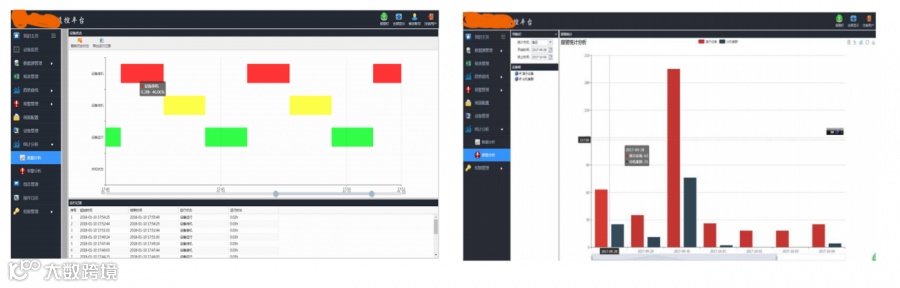根据自定义的统计分析算法,对设备数据进行分析,并以柱状图、饼图等方式展现。
