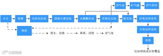养殖类污水的处理主要是去除污水中的悬浮物和各种形态的有机污染物,由于这类污水可生化性较高B/C比一般大于0.4,因此采用生化处理法加上物理处理的工艺路线。但是整个污水处理系统有效运行的关键跟前期预处理有着很大的关系,污水中悬浮物的浓度很高,必须在预处理中进行分离,既可以放置悬浮物堵塞管道,也可以避免有机悬浮物导致污水COD的上升。因此,优化处理工艺,根据企业具体情况合理设计,是污水处理系统稳定运行的关键。