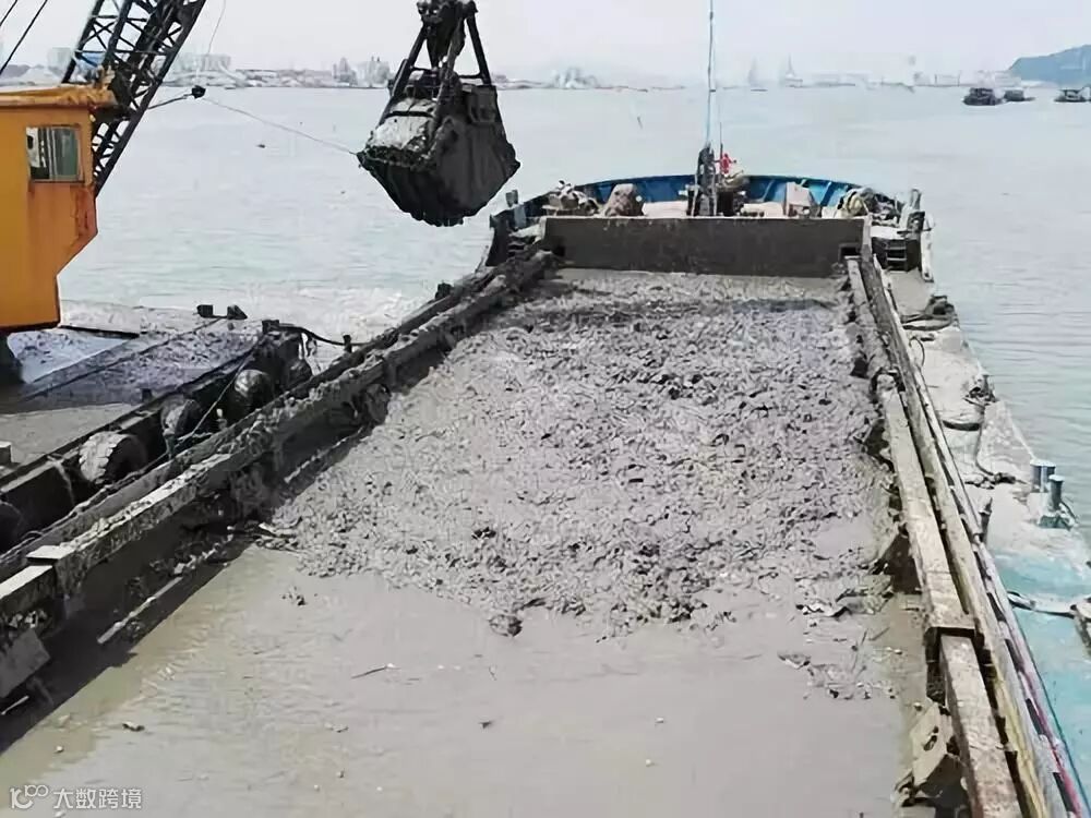 a.抓斗式清淤: 利用抓斗式挖泥船开挖河底淤泥,通过抓斗式挖泥船前臂抓斗伸入河底,利用油压驱动抓斗插入底泥并闭斗抓取水下淤泥,之后提升回旋并开启抓斗,将淤泥直接卸入靠泊在挖泥船舷旁的驳泥船中,开挖、回旋、卸泥循环作业。清出的淤泥通过驳泥船运输至淤泥堆场,从驳泥船卸泥仍然需要使用岸边抓斗,将驳船上的淤泥移至岸上的淤泥堆场中。