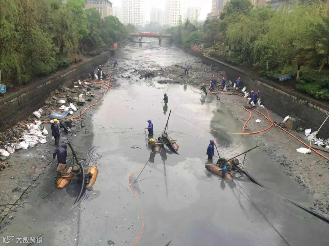 一般而言,排干清淤具有施工状况直观、质量易于保证的优点,也容易应对清淤对象中含有大型、复杂垃圾的情况。其缺点是,由于要排干河道中的流水,增加了临时围堰施工的成本; 同时很多河道只能在非汛期进行施工,工期受到一定限制,施工过程易受天气影响,并容易对河道边坡和生态系统造成一定影响。