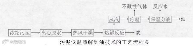 污泥低温裂解制油研究开始于20世纪80年代,己成功应用于处置市政污泥。该技术是把含水率约为65%的污泥在无氧条件下加热升温至4500℃左右,在催化剂作用下污泥中的脂肪烃化合物转化为油、炭、不凝性气体和反应水。