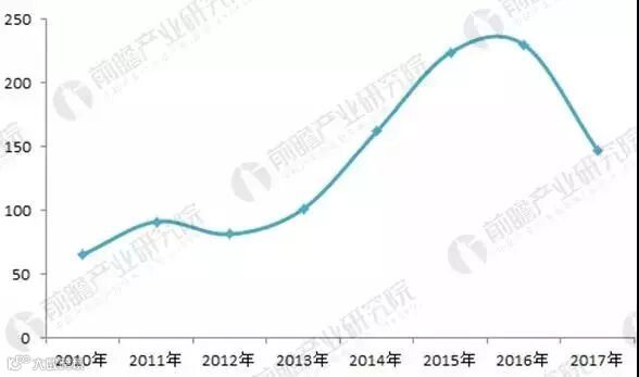 图表5:2010-2017年中国农村污水处理相关专利申请量变化图(单位:件)