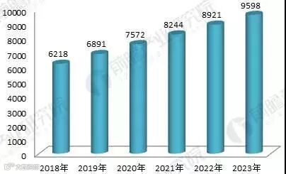 图表5:2018-2023年环保设备行业市场规模预测(单位:亿元)