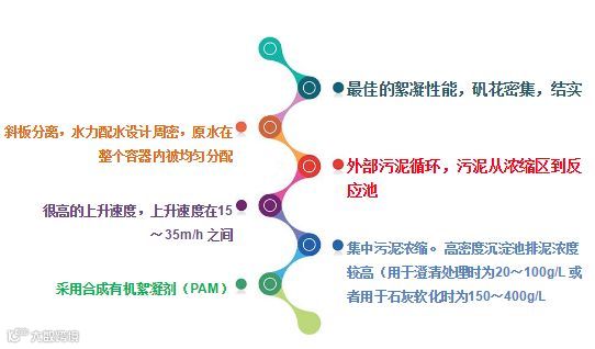 (4)由于循环使污泥和水之间的接触时间较长,从而使耗药量低于其它的沉淀装置,在特定条件下达 30%;