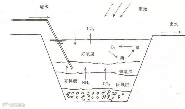 相较人工湿地处理技术,稳定塘处理技术更多是利用微生物起到降解、沉降、转化和截滤作用。稳定塘主要分为四类:好氧塘、兼性塘、厌氧塘和曝气塘。稳定塘处理工艺对NH4+﹣N、COD、BOD等都有一定的去除率,受环境影响,最终去除率也会有一些差别。