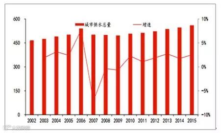 城市供水总量保持稳定增长(亿立方米)