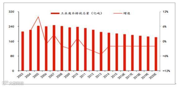 2003-2020年中国工业废水排放总量及增速
