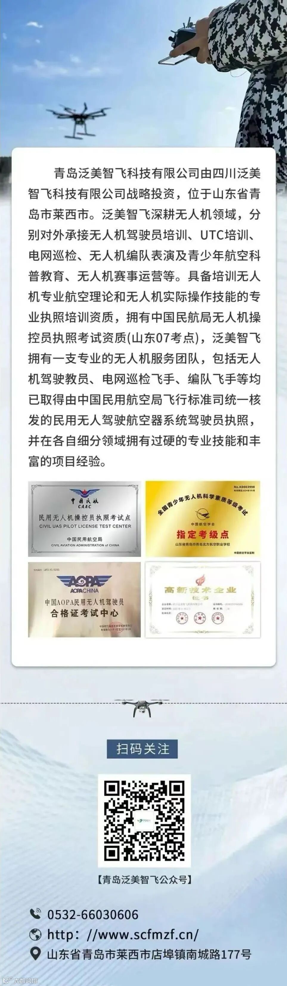 如果你也渴望解锁合法飞行资质,开启低空经济职业新赛道,欢迎咨询山东07考点(青岛泛美智飞),我们将为你提供从培训到取证的全流程支持,助你逐梦蓝天、不负韶华!