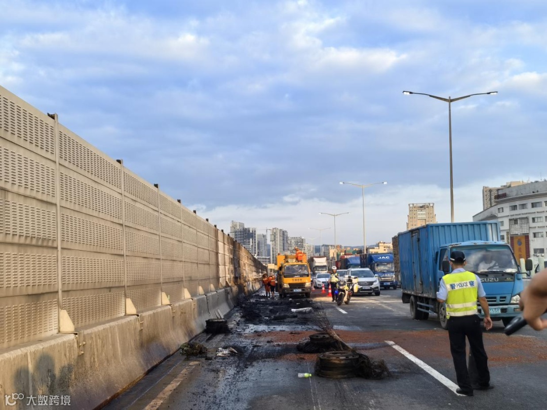 2024年10月22日下午,一辆运载废弃化学品的货车在广州华南快速路段行驶中突发着火,火势迅速蔓延,部分燃烧的废渣掉落桥底,引燃了桥下的护栏。广州市环境保护技术有限公司(以下简称环保技术公司)接到应急指令后迅速响应,有力部署,赶赴现场进行应急处置,确保了周边环境的保护和恢复。