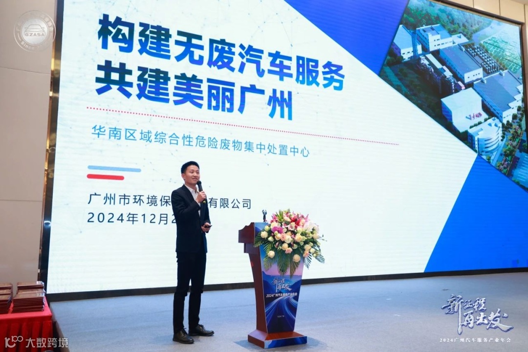 2024年12月24日,广州市汽车服务业协会主办以“新征程 再出发”为主题的“2024广州汽车服务产业年会”,广州市商务局、市贸促会、市工商联、市工信局、市公安车管等相关政府部门领导,全国乘用车信息联席分会、省市汽车行业协会负责人,以及广州地区汽车经销集团、汽车经销店、二手车市场及经销企业、汽车出口、汽车后市场、汽车金融保险等企业代表齐聚一堂。广汽商贸作为广州市汽车服务业协会会长单位,总经理李勇应邀出席年会,并携广汽商贸广州地区22家成员企业共同参与。广州市环境保护技术有限公司(以下简称环保技术公司)总经理彭长武在会上做“构建无废汽车服务 共建美丽广州”主题分享,为汽车行业固废和环境管理提出专业化建议和解读。