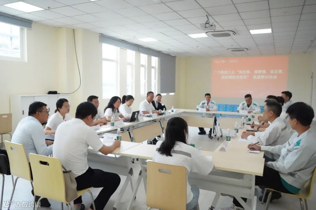 在技术楼研学培训室,广汽集团工会、广汽商贸及环保技术公司员工代表进行了座谈交流,员工们踊跃发言分享了自己和身边同事在工作和生活中的经验和感悟,同时也提出了在实际工作中所面临的困难和挑战。