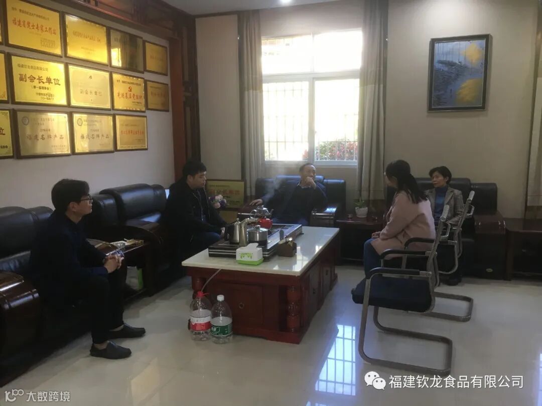 右一:福建省贸促会党组书记、会长徐敏、右二:福建钦龙食品有限公司副董事长洪涛、右三:霞浦县商务局局长方勇。