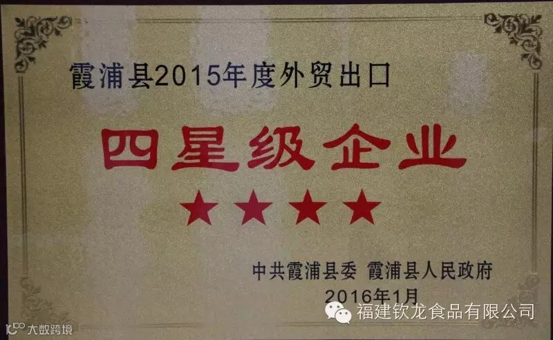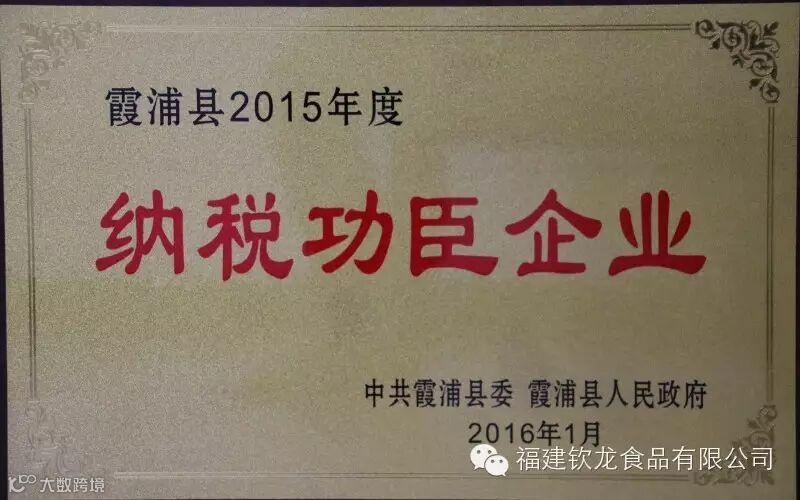 2016年1月27日,霞浦县委县政府召开全县经济工作暨城市、生态、扶贫工作会议,会上表彰了一批先进单位及个人。钦龙食品获得2015年度霞浦县纳税功臣企业、2015年度霞浦县外贸出口四星级企业等两项荣誉。