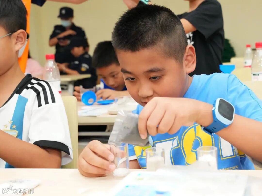 最后,学员们在技术楼二楼培训室开展环保课堂,在研学导师和基地导师的指导下,学员们利用砂石、活性炭、纱布等材料,分组讨论并在研学卡上设计出理想的净水步骤,并制作简易净水器,对事先准备的污水开展净水操作,观察净水效果。整场活动气氛活跃,学习氛围浓厚,孩子们求知若渴、认真听讲,对不懂的问题随时提问。工作人员的讲解全面具体、生动形象、风趣幽默,并对孩子们提出的问题耐心解答。