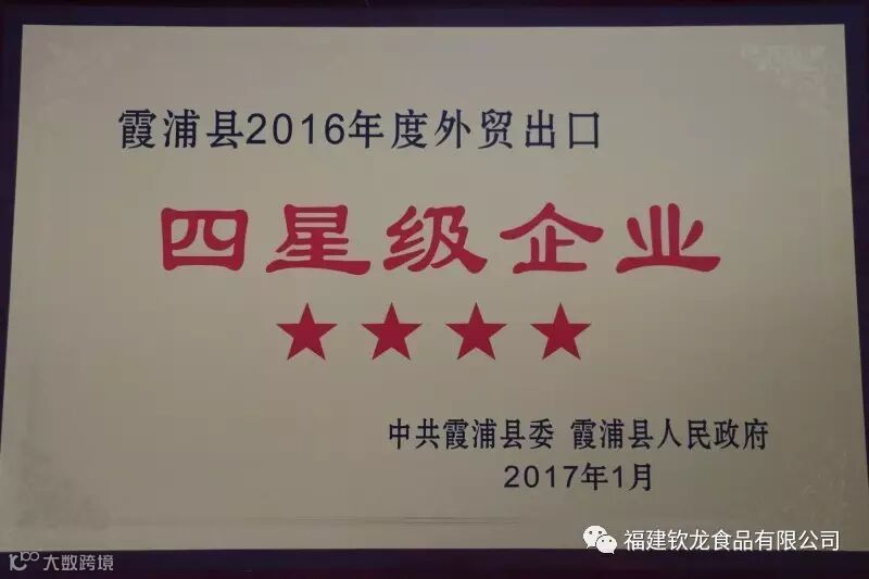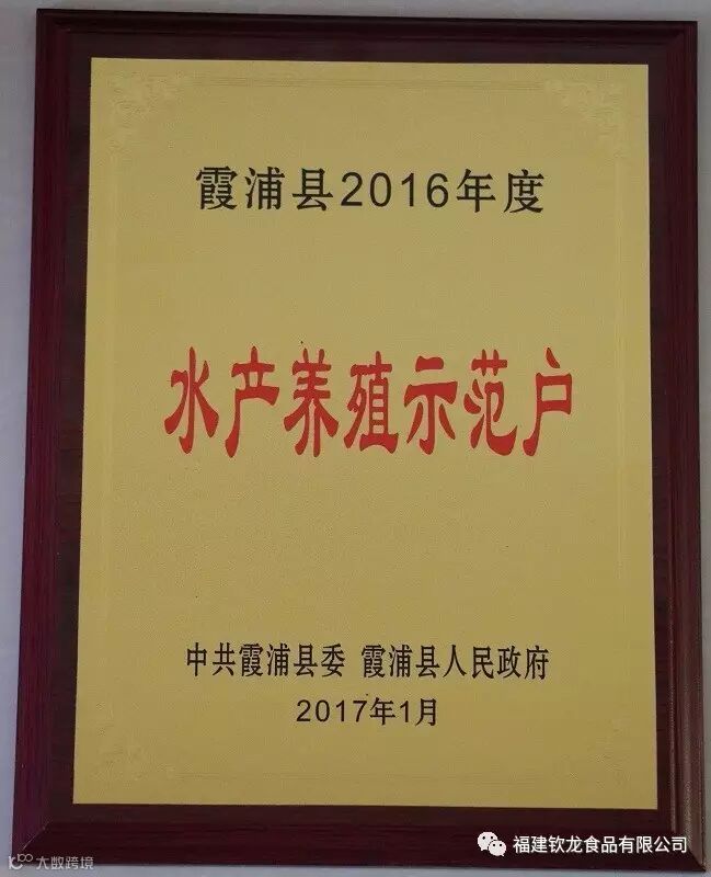 2017年2月6日,霞浦县委县政府召开2017年全县经济工作会议,会上表彰了一批先进单位及个人。钦龙公司继2015年后,再次获得2016年度霞浦县纳税功臣企业、2016年度霞浦县外贸出口四星级企业等两项荣誉。同时,公司的工厂化循环水养殖基地被评为2016年度霞浦县水产养殖示范户。