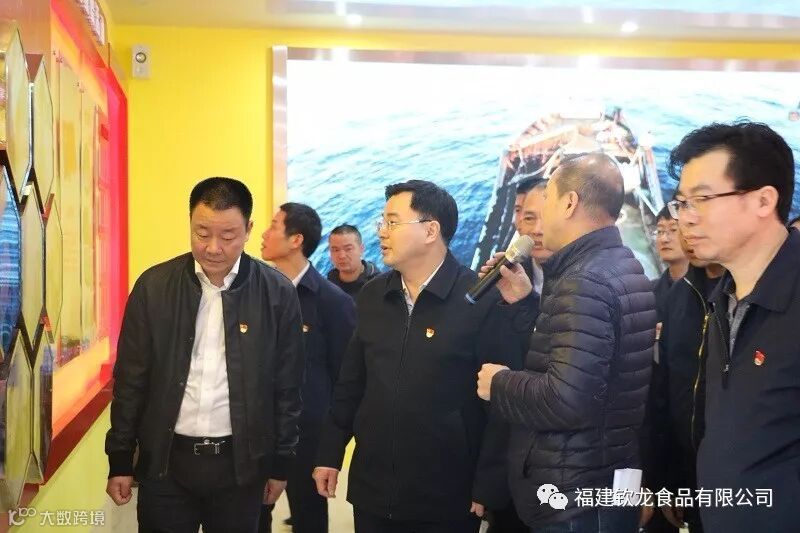 12月2日,福建省委组织部部长胡昌升在宁德市、霞浦县领导的陪同下,莅临我司调研基层党建工作。胡昌升部长一行在公司总经理洪春寿、副董事长洪涛、公司党支部书记庄雄的陪同下先后察看了公司工厂化循环水养殖基地、新落成的党群服务活动中心以及与福建农林大学食品科学学院共建的“海洋食品联合研发中心”。