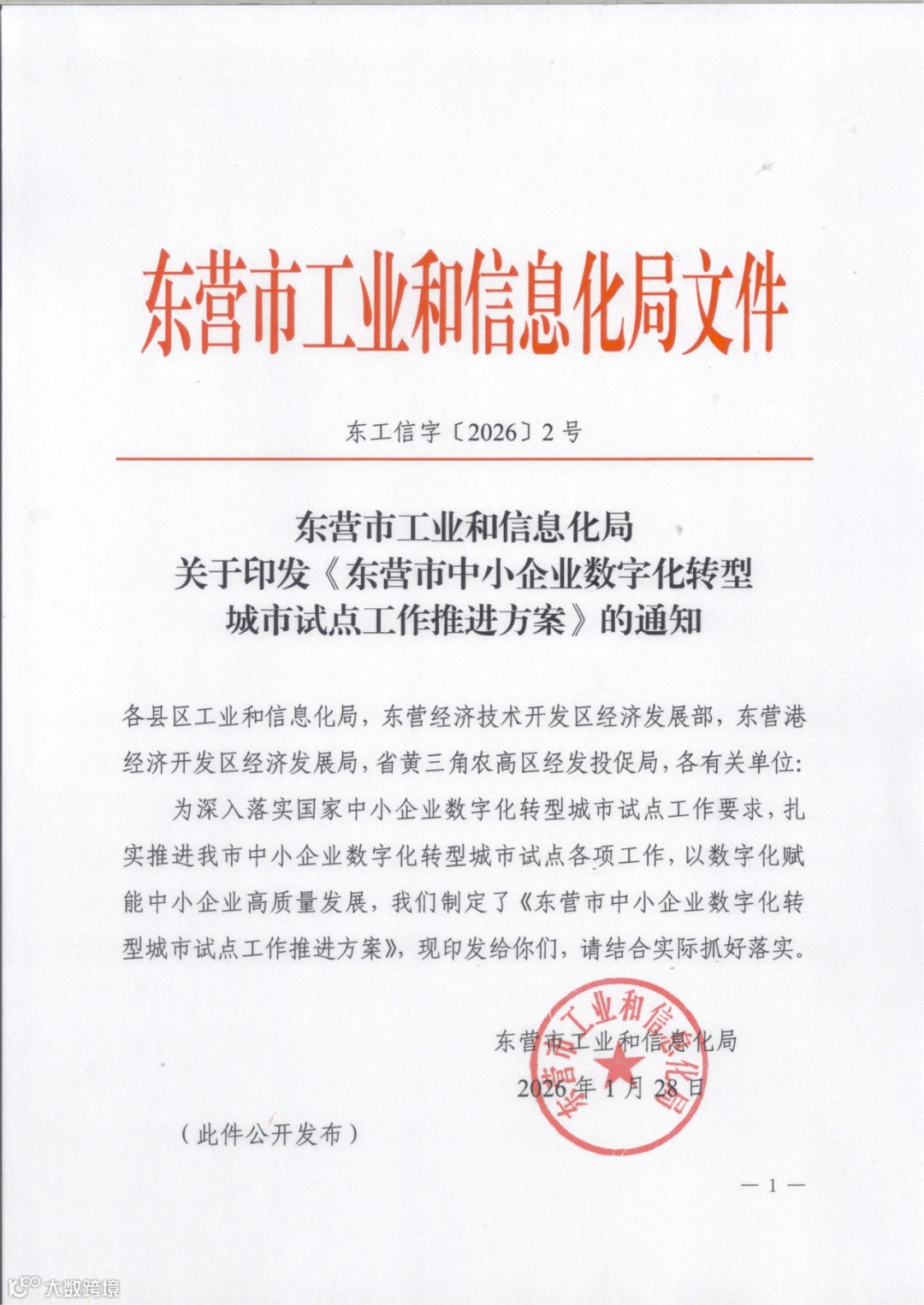 东工信字〔2026〕2号关于印发《东营市中小企业数字化转型城市试点工作推进方案》的通知.pdf
