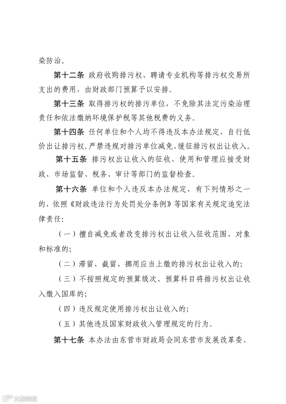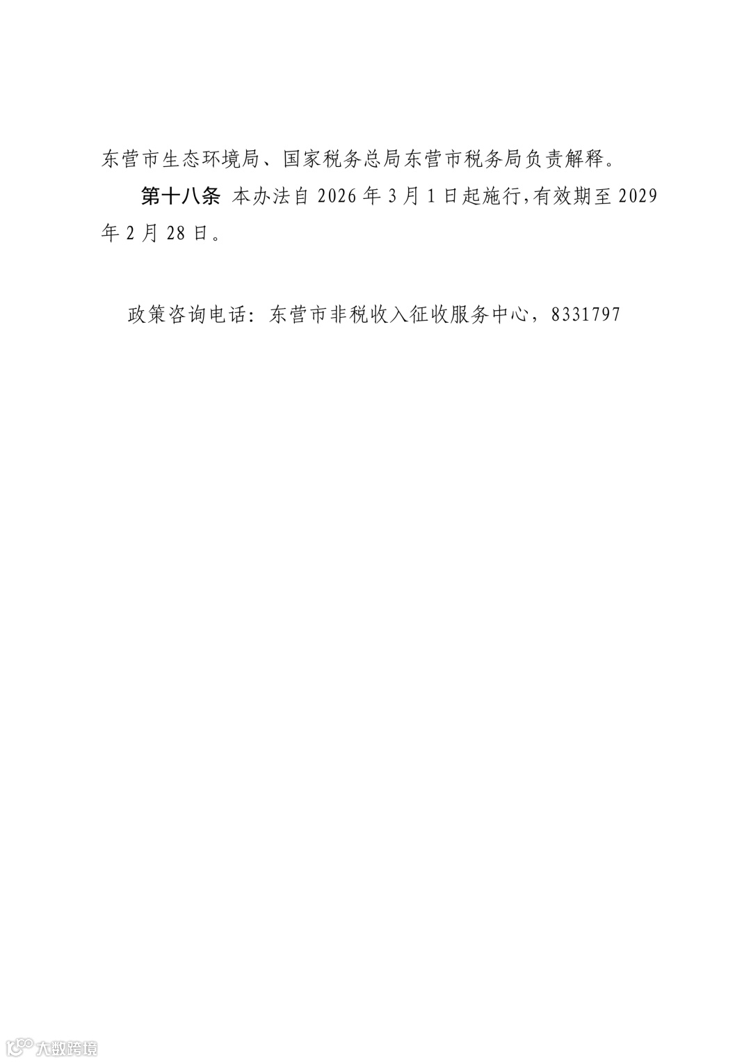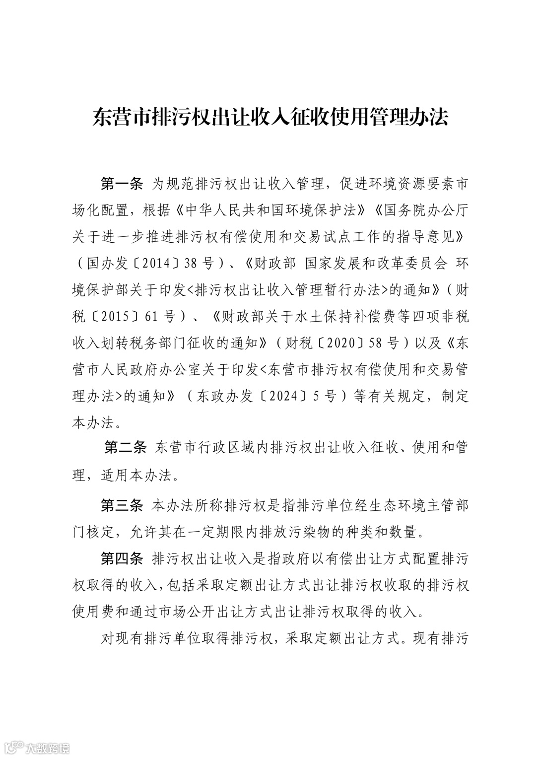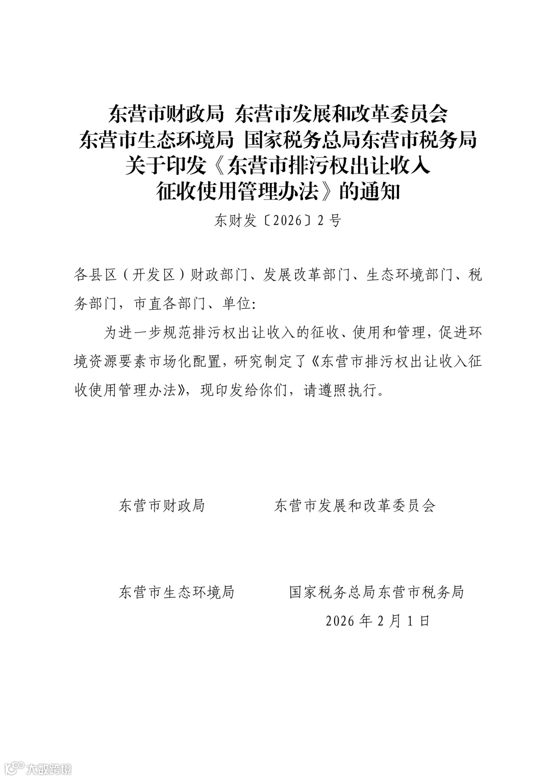 《东营市排污权出让收入征收使用管理办法》将于26年3月1日起实施