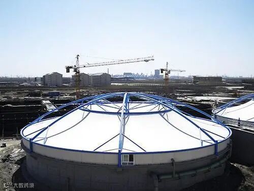 另外,污水处理厂也要考虑加盖的材料选择哪一种,目前有阳光板搭配钢骨架、玻璃钢搭配钢骨架、膜材料、全PP材料以及全玻璃钢材料,这些都比较适合用在污水池密闭的环境,而且这类材料也相对轻盈。对于池面跨度大的污水处理厂可以采用新型的防腐膜材料,工业污水处理厂可以采用全PP或者全玻璃钢比较合适。采用其他的材质成本虽然低,但要考虑到使用环境容易造成腐蚀,一般寿命也就是2到3年的时间。