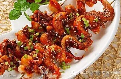 1、鱿鱼须洗净切断。将海鲜酱、二锅头和姜片放入碗中,然后用手抓匀鱿鱼须。将鱿鱼须穿到竹签上。