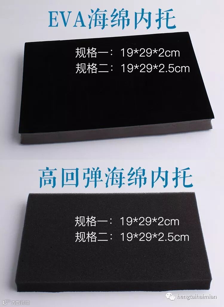 包装海绵内托(定位海绵包装)材料:普通海棉、特硬海棉、中硬海棉、超软海棉、PU海绵、EPE海绵、PE海绵、EVA海绵、XPE海绵、防火棉、防静电等环保材料,此类产品达到出口环保标准,防震缓冲性好,抗冲击,多用于定位包装领域缓冲性好,可使产品免受外部冲击,减震及静电引起的损坏,且易加工成型精确度高,适用于各种包装。