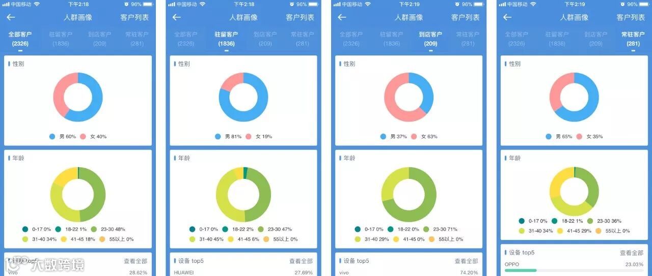 2、优化客流分类,驻留客户、到店客户、常驻客户,数据展示更加丰富,客流情况一手掌握;