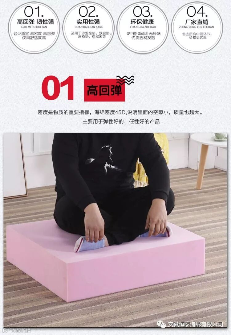 高密度:高密度海绵不管软硬都韧性非常好,弹性很好