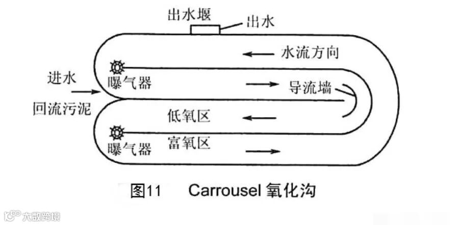氧化沟由氧化沟池、曝气设备、进出水装置、导流和混合装置等组成。