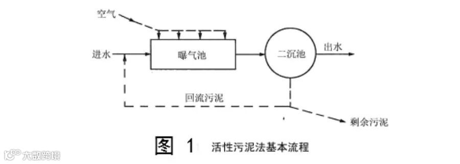 活性污泥法是以污水中的有机污染物为培养基,在有溶解氧条件下,连续地培养活性污泥,利用其吸附凝聚和氧化分解功能净化污水中有机污染物的一类生物处理方法。以曝气池和二沉池为主体组成的整体称作活性污泥系统,完整的活性污泥系统还包括实现回流、曝气、污泥处置功能所需的辅助设施。图1是活性污泥处理系统的基本流程,该流程也称为传统(普通)活性污泥法流程。