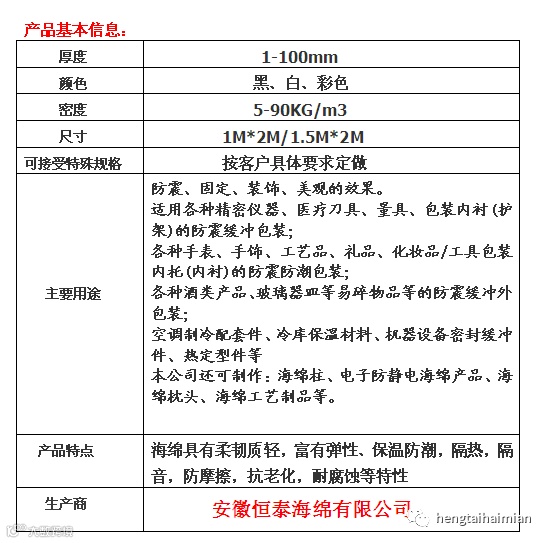 海绵材料规格(片材):1m*2m、1m*3m、1.2m*2.5m、1.5m*3.5m、卷材经切边、高温熔接后可做成任意长度的片,按顾客要求厚度可剖成0.5mm~60mm可进行裱胶、复合双面胶纸、宽度分条成若干条。