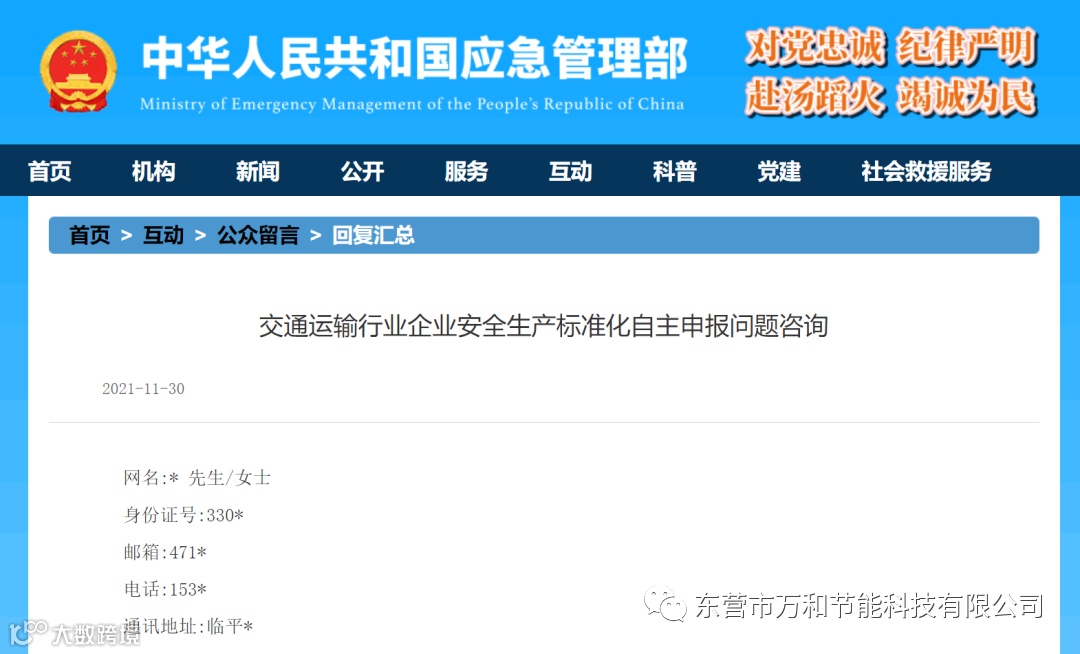 9、咨询:尊敬的部委领导,您好,想咨询下交通运输企业安全生产标准化评价一级,企业单位可以自主申报么?正式评价环节企业是否需要支付评审费用?另外从申报到评价取证一般周期是多久?咨询时间: 2021-11-23