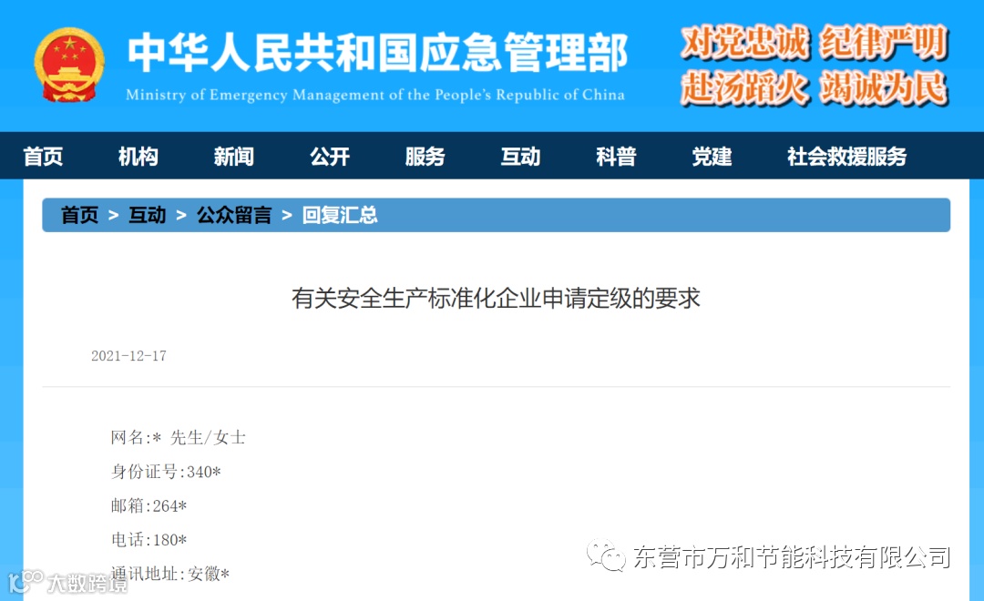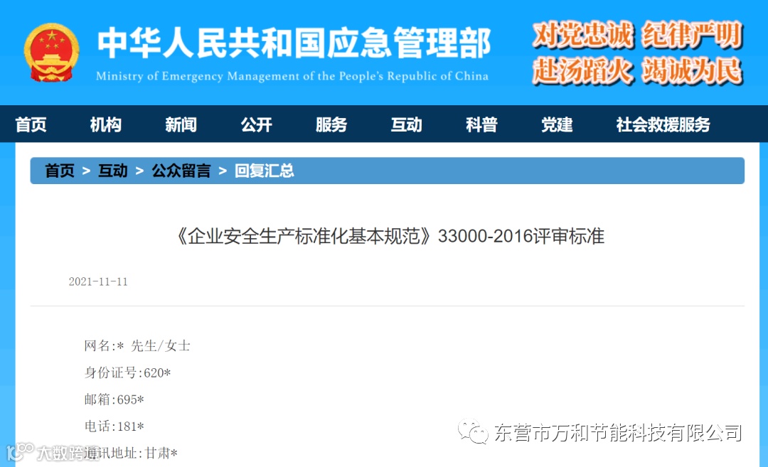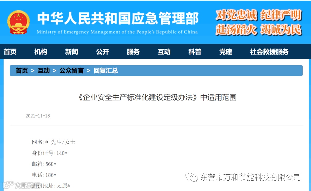 6、咨询:咨询一下2021年新出台的《企业安全生产标准化建设定级办法》是否适用于环保行业垃圾、污水处理,隶属于水利、环境和公共设施管理行业?我们公司想做标准化不知道能不能评定取证。咨询时间: 2021-12-28