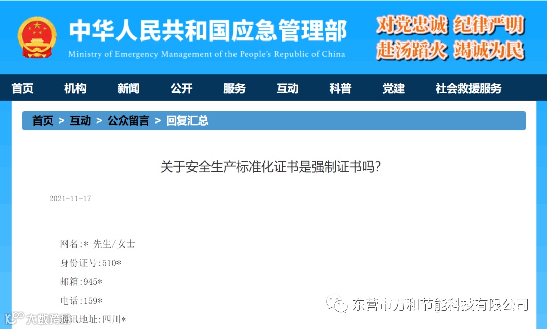 14、咨询:你好,请问关于安全生产标准化证书是强制证书吗?咨询时间: 2021-11-10