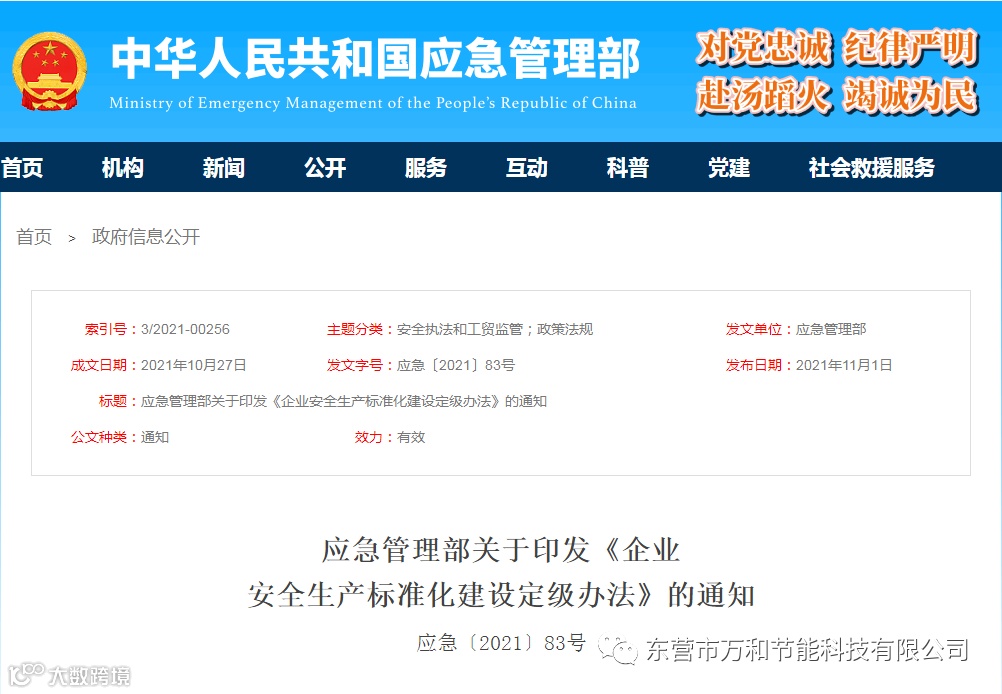 应急管理部关于印发《企业安全生产标准化建设定级办法》的通知