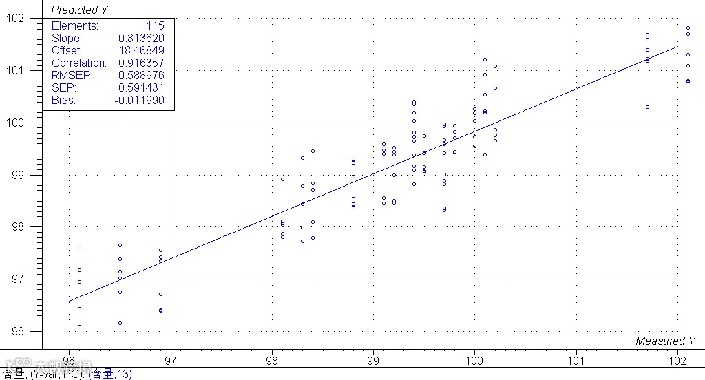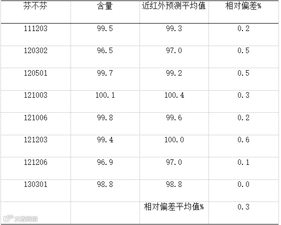 6、实验结论: 通过上述实验可见,模型验证偏差平均值为0.3%,使用GSA金光近红外光谱仪检测芬布芬片剂含量是可行的,如果能够补充更多样品,并提供更精确的化验数据,将可以取得更好的预测结果。 |