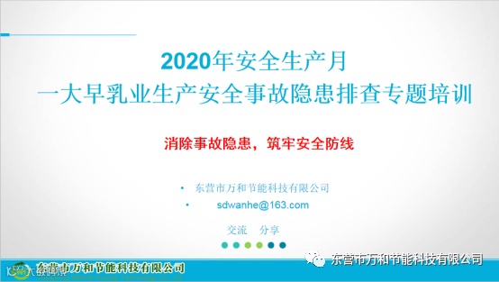 6月12日,东营市万和节能科技有限公司应东营市一大早乳业有限公司邀请,对公司班组以上员工进行生产安全事故隐患排查治理专项培训。