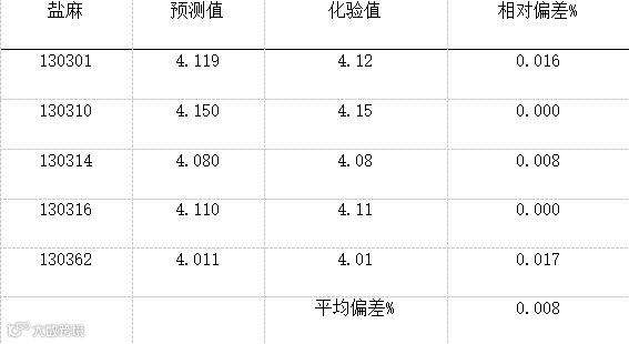 通过上述实验可见,酚咖麻敏的盐麻含量内部验证偏差为0.008%,使用GSA金光近红外光谱仪检测熊胆开明片中牛磺去氧胆酸含量是可行的,如果能够补充更多样品,并提供精确的化验数据,将可以取得更好的预测结果。