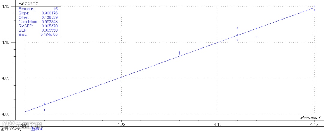 4.建模方法:光谱数据进行一阶微分九点平滑处理,将光谱与实验数据一一对应,使用PLS算法建立定量模型。