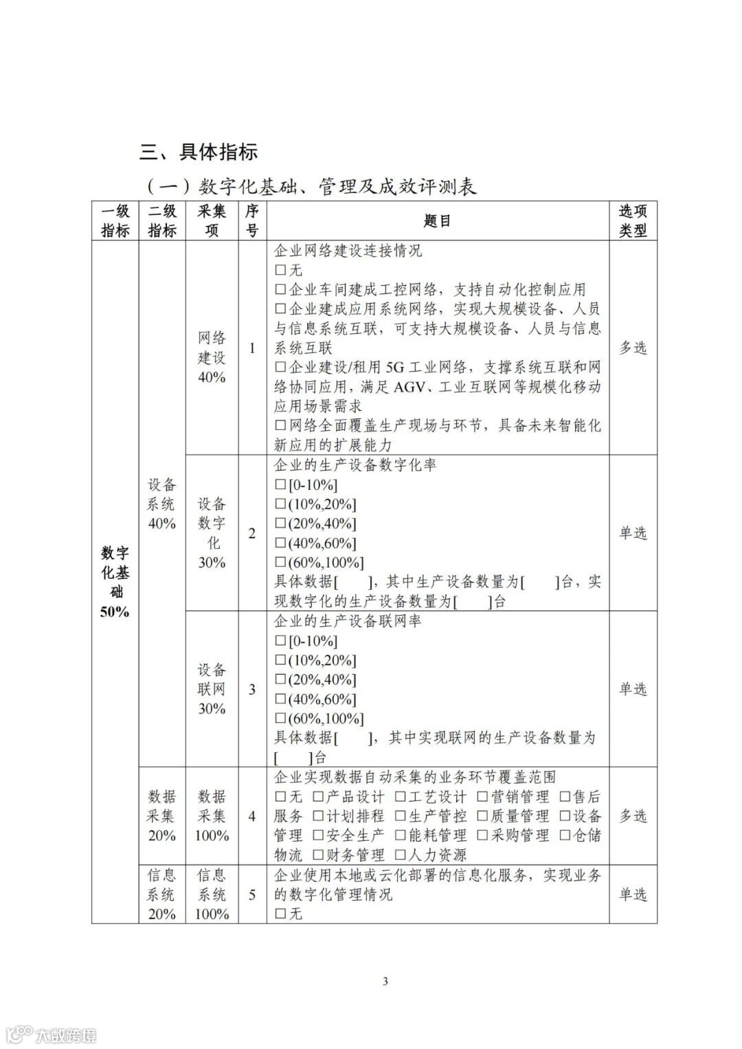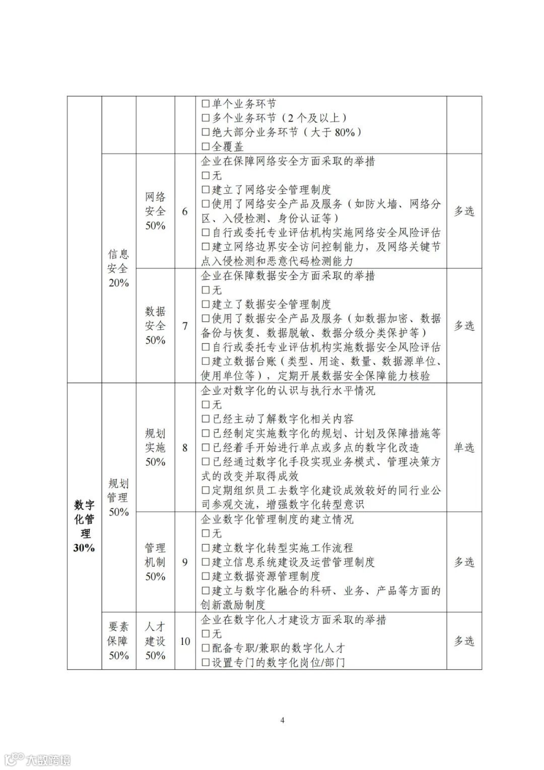 三是中小企业数字化转型试点城市试点企业数字化水平的评定,需按照《评测指标(2024年版)》进行现场评定。