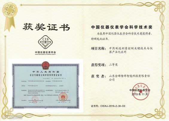 2019年11月25日,我公司参与的项目《中药制造测量控制关键技术与仪器产业化应用》荣获中国仪器仪表学会科学技术奖二等奖。