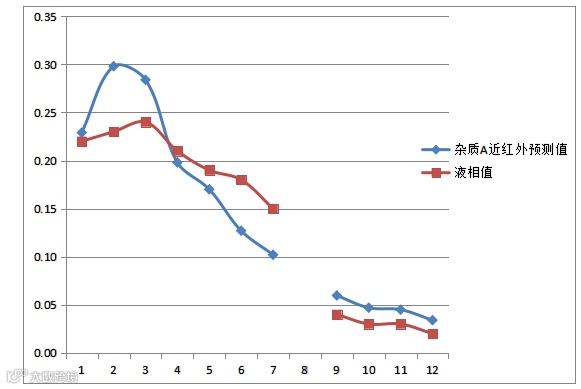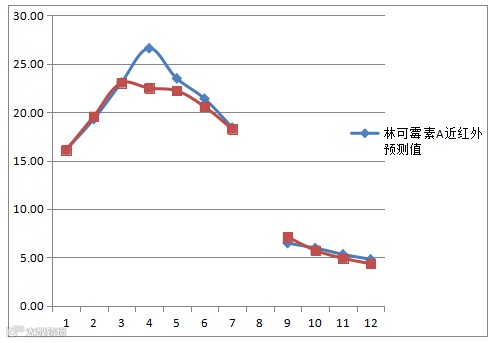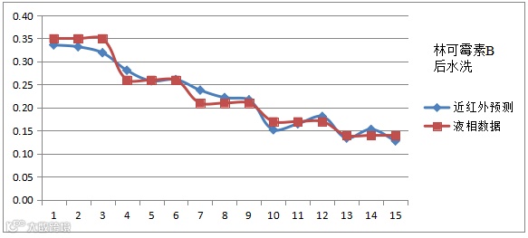 近红外预测值与液相检测值对比图
