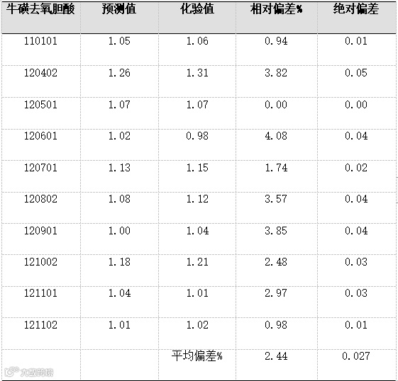 牛磺去氧胆酸含量模型相关性0.8510